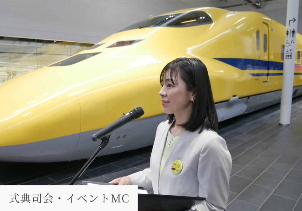 鉄道イベントをはじめ、式典、企業セミナーなど様々な場面で進行役を務めます。温かい雰囲気づくりと確かな段取り力で、大切な場を彩ります。